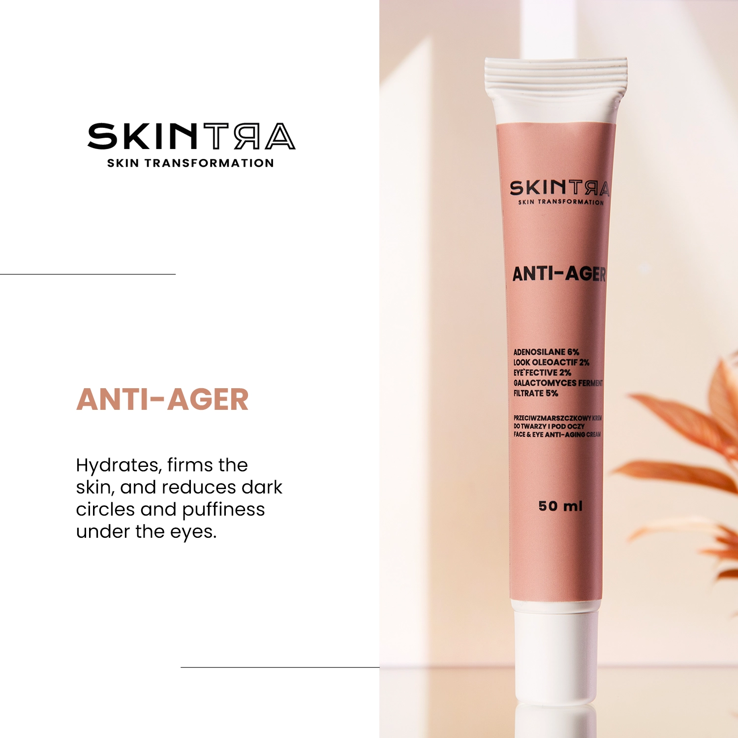 Anti-Ager is a multi-tasking anti-wrinkle cream that combines high concentrations of active ingredients used in both facial and eye care products. The formula has been developed to deliver comprehensive skincare while providing lifting, smoothing, and protective effects.