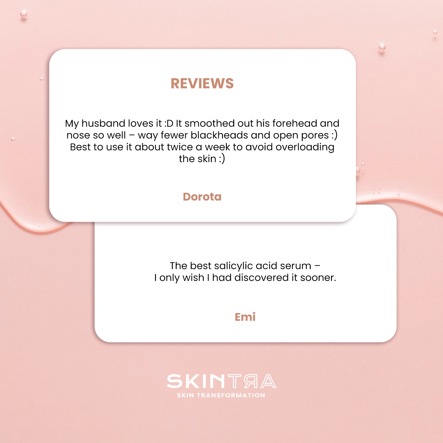 The efficacy of salicylic acid in a gentle formulation. A light serum that will cleanse and smooth the skin without irritating it. Forget about blackheads and imperfections!