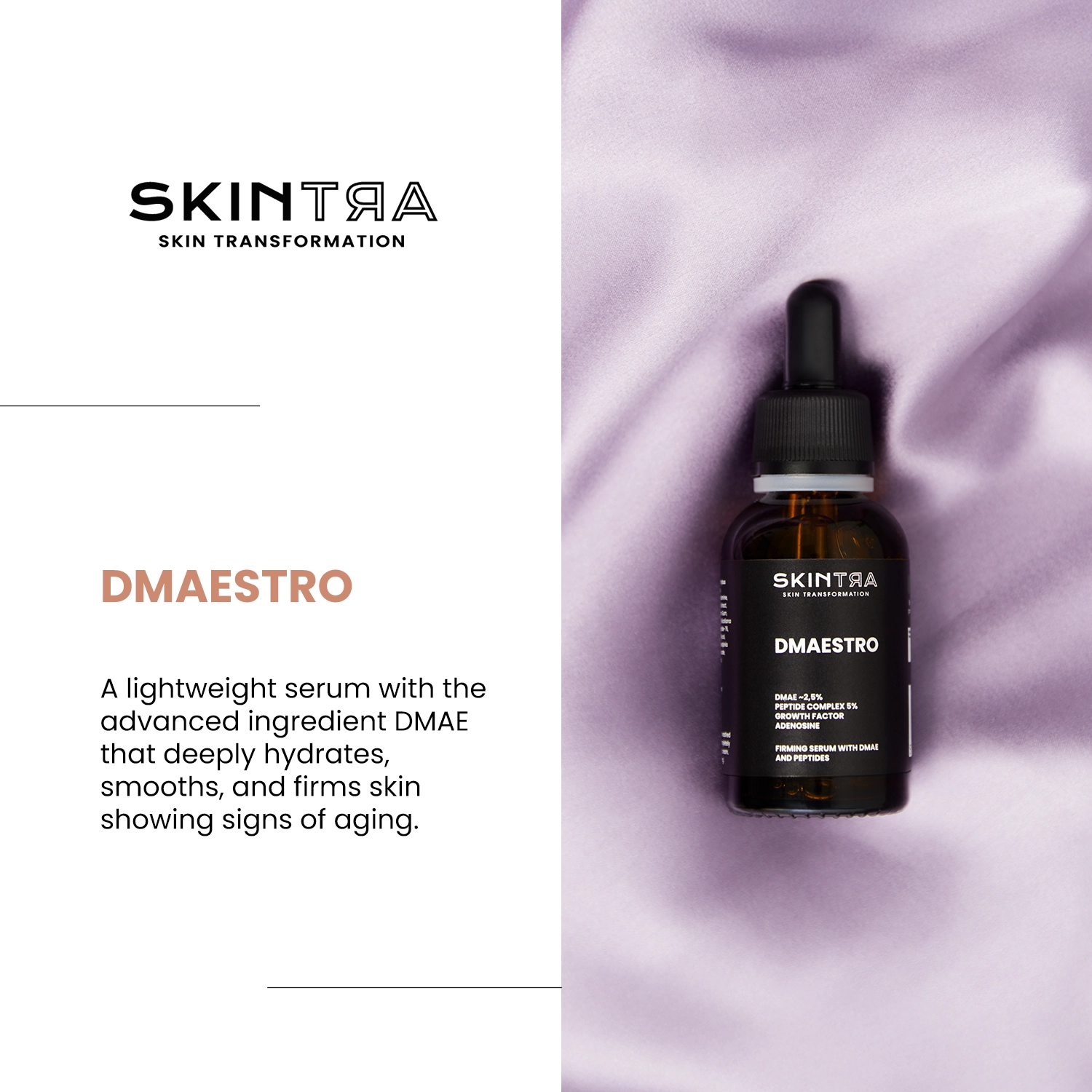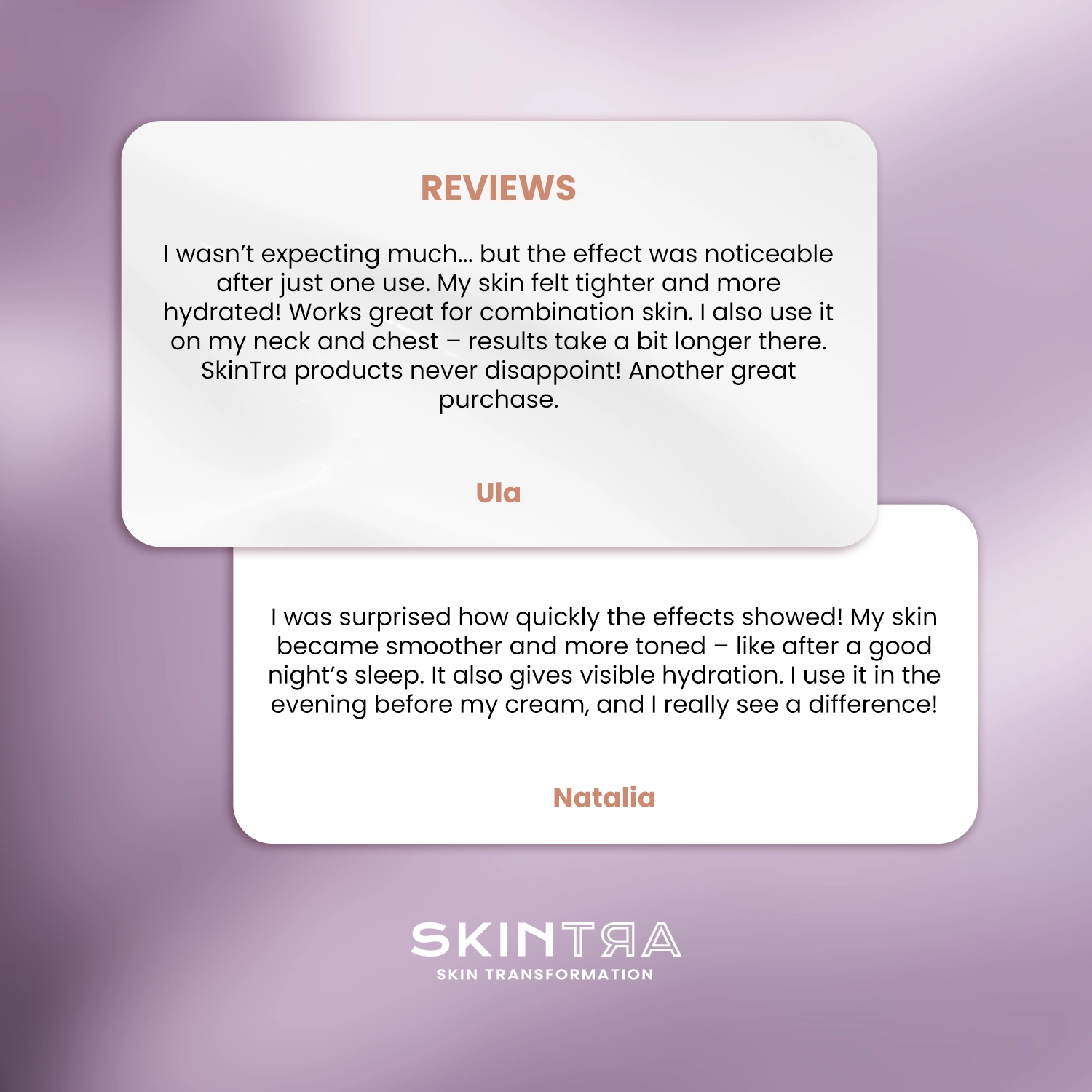 a lightweight serum that provides a hydrating, smoothing, firming and tightening effect on skin affected by signs of aging. It has a gel formula that may cause a slight stickiness and tightness immediately after application, but later absorbs without a noticeable layer. The feeling of "tightness" is not due to dryness of the skin, but to the ingredients that give this sensation. The product can be used on the face, neck, décolleté and hands, as well as around the eyes. It owes its effect to the presence of an ingredient that stimulates muscle contraction - DMAE 2.5% - the resultant action of which is to reduce the appearance of wrinkles and improve skin firmness. The applied peptide complex, together with a growth factor , support the synthesis of type I collagen and thicken intercellular cement proteins, leading to smoothing of unevenness of mature skin and its tension. Completing the composition is chicory oligosaccharide together with adenosine. Their action is to firm the skin by creating an occlusive layer on its surface, as well as stimulating elastin production or regeneration and minimizing inflammation. The serums do not roll off and look good under makeup. It can be used for both day and night and all year round. The DMAE ingredient gives full effect after 6 months of use. For owners and holders of dry skin, however, we recommend applying a cream 10-15 minutes after applying the serum to create an extra protective layer on the skin's surface. The product is suitable for vegans and vegetarians.