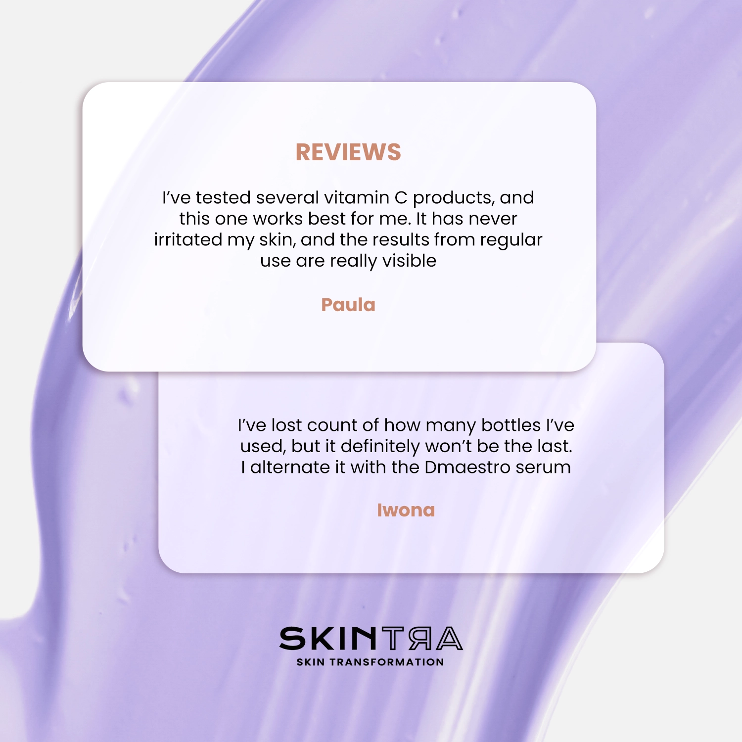 Vitamin C 20% - active ingredient - mainly associated with discoloration lightening properties. The property relates to hyperpigmentation caused by a number of factors, but also to the overall improvement of color, reducing earthiness. In addition, ascorbic acid fights free radicals, slowing down the aging process, and stimulates collagen and elastin production, increasing skin firmness and elasticity. The antioxidant effect further prevents the formation of blackheads. It also speeds up skin regeneration in blemish-prone skin and reduces the occurrence of post-sun erythema and UVB-induced burn.