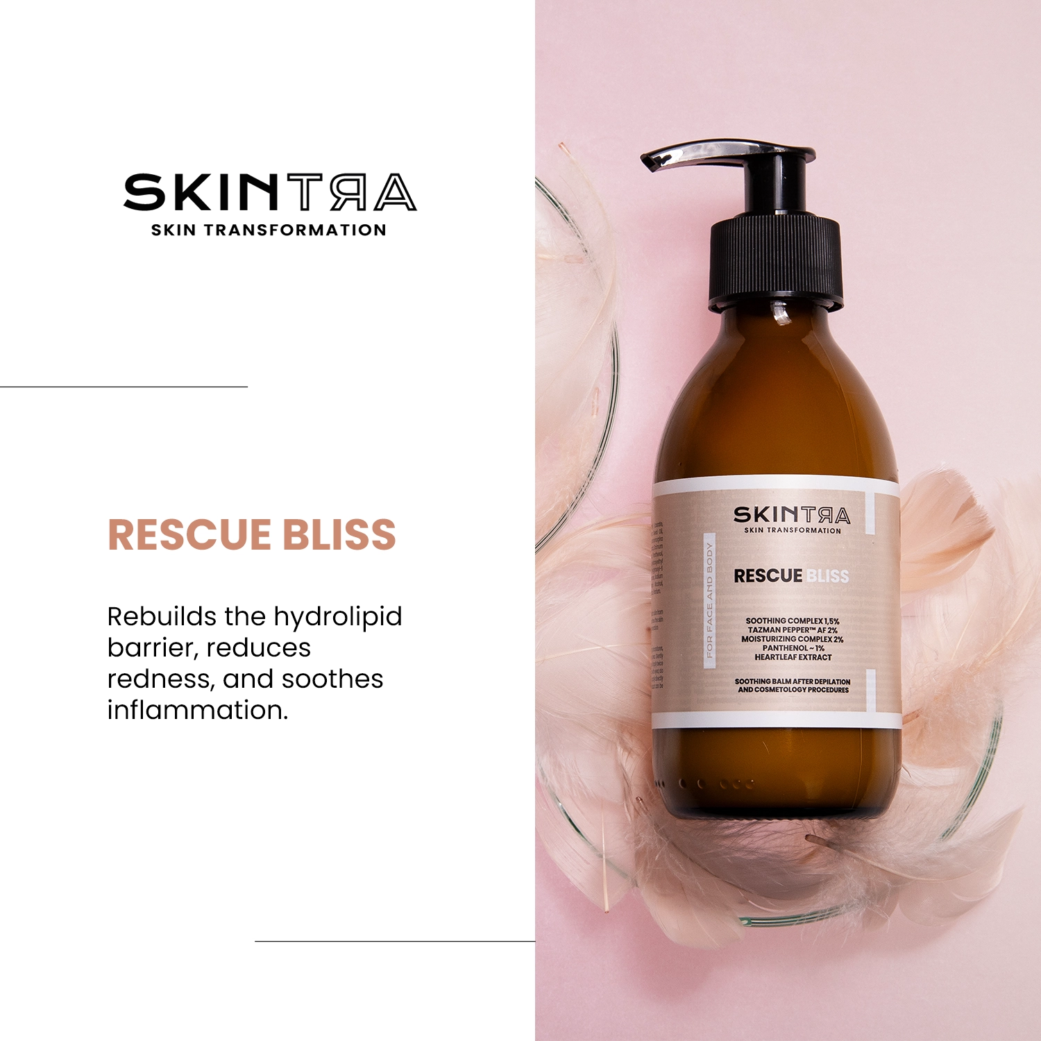 SkinTra – Rescue Bliss is a balm created for the care of facial and body skin after more invasive cosmetic treatments, shaving, or hair removal. The formula has been developed not only to soothe irritation but also to help prevent it. Regular use of Rescue Bliss restores a healthy appearance to the skin and relieves discomfort.